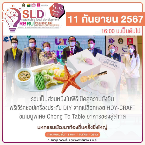มหาวิทยาลัยราชภัฏรำไพพรรณีจัดงาน “Sustainable Local Development (S.L.D.) – RBRU Innovation Fair 2567” ภายใต้แนวคิด “นวัตกรรมสร้างสรรค์ท้องถิ่นสู่อนาคต” เป็นเวทีสาธารณะไม่เก็บค่าใช้จ่ายสำหรับเกษตรกรและผู้ผลิตอาหาร เพื่อนำเสนอผลงานและนวัตกรรมที่ต่อยอดจากการถ่ายทอดองค์ความรู้ของมหาวิทยาลัยตามยุทธศาสตร์ราชภัฏเพื่อการพัฒนาท้องถิ่น งานจัดขึ้นระหว่างวันที่ 11–13 กันยายน 2567 ณ จันทบุรี ฮอลล์ ชั้น 2 ศูนย์การค้าเซ็นทรัล จันทบุรี มีผู้เข้าร่วมรวม 3,763 คน ทำหน้าที่เป็น “สะพานเชื่อม” ครบวงจรตั้งแต่การเรียนรู้เชิงเทคนิค การยกระดับมาตรฐานความปลอดภัย คุณภาพและบรรจุภัณฑ์ ไปจนถึงการเชื่อมโยงการตลาด ครอบคลุมชุมชนจาก 21 ตำบลใน 21 อำเภอ ของจังหวัดระยอง จันทบุรี และตราด