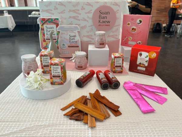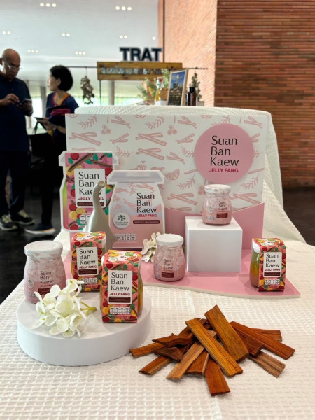 ในกระบวนการผลิต เจลลี่ฝางใช้วัตถุดิบหลักจากเกษตรกรจันทบุรี ได้แก่ “มังคุด” จากกลุ่มผู้ปลูกมังคุดแปลงใหญ่ ต.คมบาง อ.เมือง, “เลมอน” จากเครือข่ายเกษตรกรใน อ.เมือง (เช่น สวนเลมอนจันท์ ออร์แกนิก) และ “น้ำผึ้ง” จากวิสาหกิจชุมชนสวนป่าโกงกางเกษตรอินทรีย์ อ.เมือง การจัดซื้อดังกล่าวช่วยสร้างรายได้หมุนเวียนให้ชุมชน เสริมความมั่นคงทางอาหาร สนับสนุนเกษตรอินทรีย์และการผลิตที่เป็นมิตรต่อสิ่งแวดล้อม รวมถึงสร้างเครือข่ายความร่วมมือระหว่างมหาวิทยาลัย–ชุมชน–ภาคการผลิตท้องถิ่น ทั้งนี้ เจลลี่ฝางถูกพัฒนาให้ “เดินตามรอยความสำเร็จ” ของผลิตภัณฑ์ RBRU Herb Shot ซึ่งได้รับ รางวัลผลิตภัณฑ์สมุนไพรคุณภาพ ประเภท Premium Herbal Products Sustainable จากกรมการแพทย์แผนไทย กระทรวงสาธารณสุข