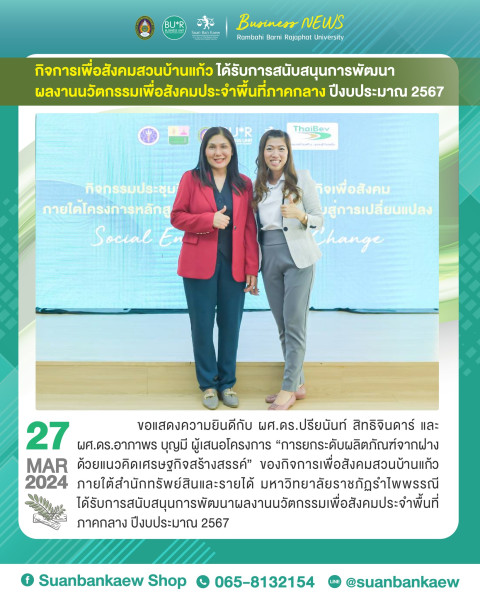 โครงการนี้มุ่งเน้นการพัฒนาผลิตภัณฑ์จากฝางให้มีมูลค่าเพิ่ม ผ่านแนวคิดเศรษฐกิจสร้างสรรค์ พร้อมสร้างโอกาสทางการตลาดและความยั่งยืนทางสังคม