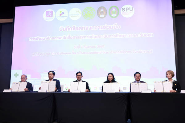 3.บันทึกข้อตกลงความร่วมมือกับสำนักงานคณะกรรมการสุขภาพแห่งชาติ คณะกรรมการเขตสุขภาพเพื่อประชาชน เขตพื้นที่ 6 ศูนย์สื่อสร้างสรรค์ภาคตะวันออก มหาวิทยาลัยบูรพา มหาวิทยาลัยราชภัฏราชนครินทร์ และมหาวิทยาลัยศรีปทุม เรื่อง “การพัฒนาศักยภาพนักสื่อสารสุขภาวะในสถาบันการศึกษา ภาคตะวันออก”
