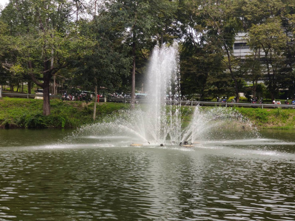 4. การบำบัดน้ำเสียจากอาคารด้วยบ่อตกตะกอน (Oxidation pond) ก่อนปล่อยสู่แหล่งน้ำตามธรรมชาติในมหาวิทยาลัย หรือนำมาใช้รดน้ำต้นไม้ในช่วงฤดูแล้ง (บ่อหลังคณะวิทยาศาสตร์และเทคโนโลยี)