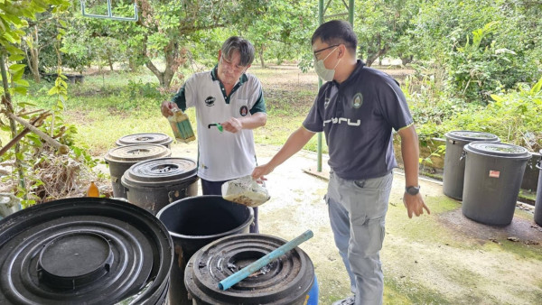 3.ในปี 2567 งานอาคารสถานที่และบริการดำเนินกิจกรรมนำร่องด้วยการนำขยะอินทรีย์และขยะอาหารกลับมาใช้ประโยชน์ใหม่ผ่านกระบวนการหมักและการเพิ่มสารอาหารให้กับจุลินทรีย์ตามธรรมชาติเพื่อทดลองใช้ควบคุมกลิ่นและเพิ่มประสิทธิภาพในการย่อยสลายสารอินทรีย์ในระบบบำบัดน้ำเสีย