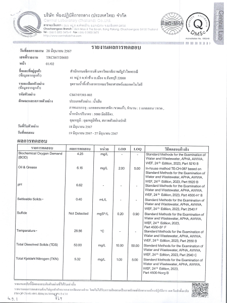การบำบัดน้ำเสียในมหาวิทยาลัย (Wastewater treatment process in the university)-6.3.1