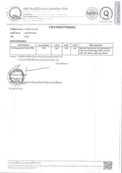 1.จัดทำประกาศมาตรการด้านของเสีย โดยกำหนดให้มีการตรวจสอบคุณภาพน้ำทิ้งและควบคุมให้เป็นไปตามมาตรฐาน