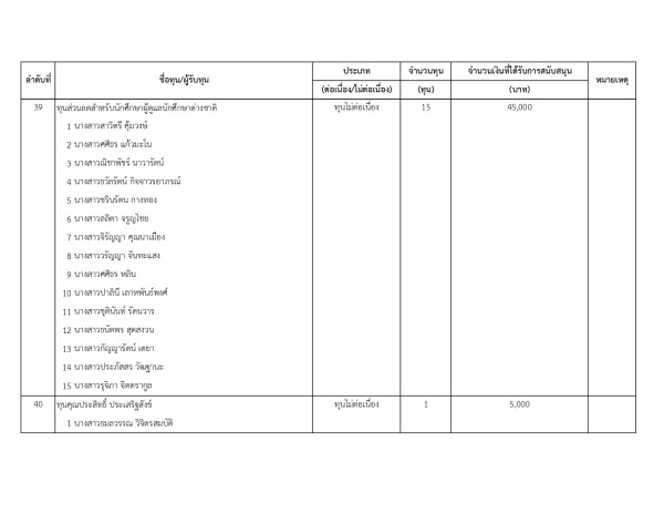 สรุปข้อมูลทุนการศึกษา ปีการศึกษา 2567 มหาวิทยาลัยราชภัฏรําไพพรรณี