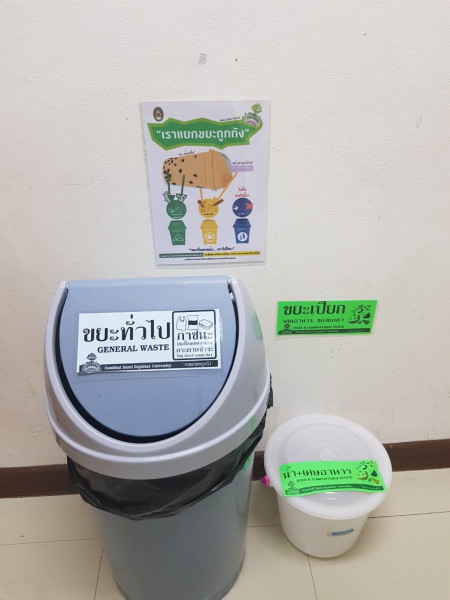 -การจัดตั้ง จุดคัดแยกขยะ 6 ประเภท ได้แก่ ขยะทั่วไป / ขยะพลาสติก / ขยะกระดาษ / ขยะอันตราย/ขยะกระป๋องและขวดแก้ว /ขยะเปียกเศษอาหาร ของเหลว