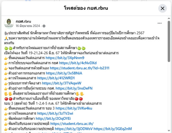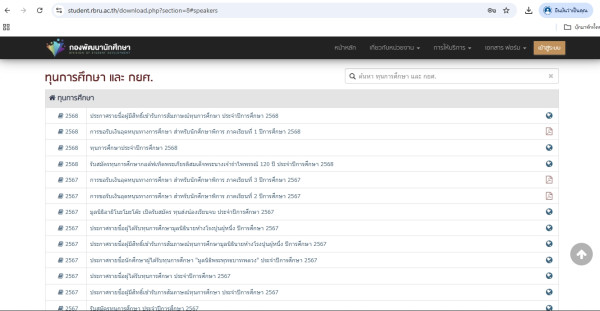 นอกจากนี้มหาวิทยาลัยจัดให้มีบริการทุนการศึกษา เช่น กองทุนเงินให้กู้ยืมเพื่อการศึกษา (กยศ.) ทุนการศึกษาสำหรับนักศึกษายากจน หรือที่มีกลุ่มรายได้ครัวเรือนต่ำสุด โดยการประชาสัมพันธ์การให้ข้อมูลผ่านช่องทาง Facebook เพจ “กยศ.rbru” โครงการปฐมนิเทศนักศึกษาใหม่ และช่องทางเว็บไซต์กองพัฒนานักศึกษา